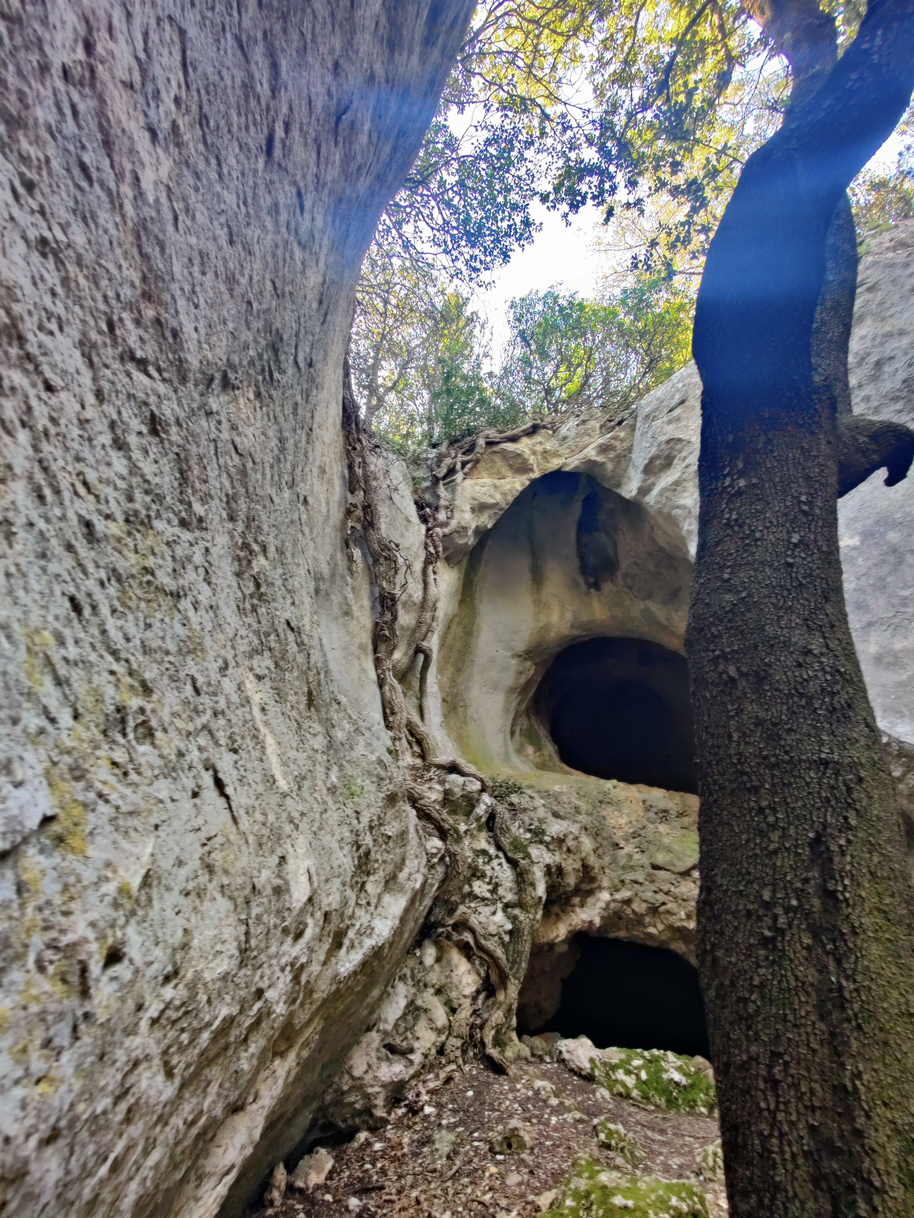 Superbe mini aventure de 1h30, gratuite et qui ne vous décevra pas ! Par contre rien n'est indiqué sur place, donc utilisez google map. Il faut vous garer au parking indiqué sur google (ce n'est pas vraiment un parking comme on l'imagine, mais juste un début de chemin), et marcher sur le sentier pendant 10 bonnes minutes. Le mini sentier pour accéder au grottes est simplement indiqué avec un kairn, sur la droite. ça monte raide sur quelques dizaines de metres. Et ensuite vous longez la paroi, avec votre paroi sur votre groite (vous tournez à gauche en arrivant en haut). Et il y a plein de grottes à voir. Ne vous arrêtez pas à celle avec la grande arche, car ensuite il y en a d'autres, dont 2 avec une exploration sympa ou il faut ramper dans un passage pour accéder à une salle plus grande, ate des tunnels un peu longs. Aucun risque particulier, mais prenez de bonnes chaussures et si possible une lampe frontale. On avait pas ça mais ça l'a fait. J'ai croisé une petite chauve souris endormie. faites attention de ne pas les déranger.