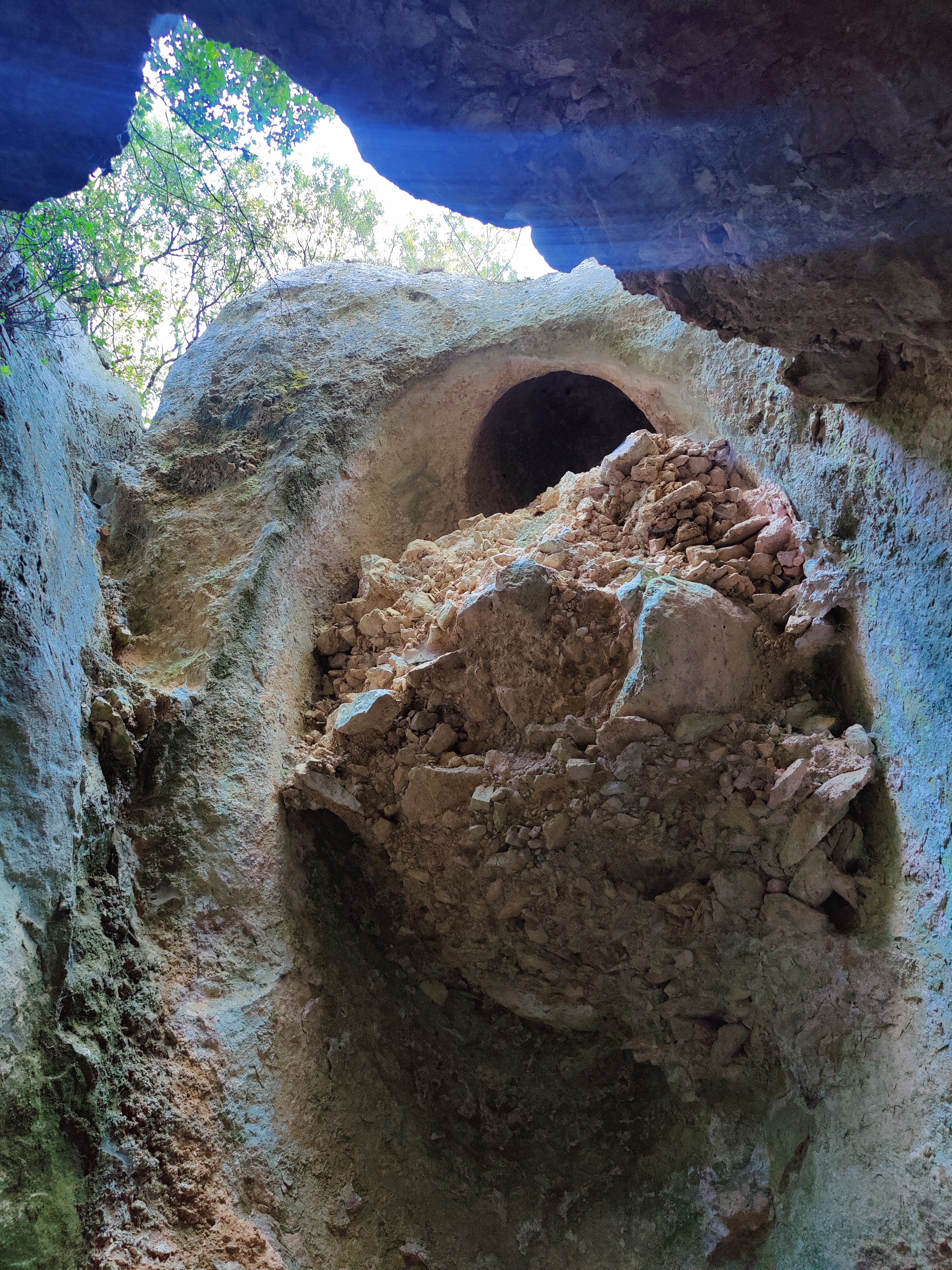 Un endroit assez étonnant. Ce n'est pas une grande grotte mais plusieurs petites, les unes à côtés des autres. On pourrait presque en faire de vraies habitations troglodites.