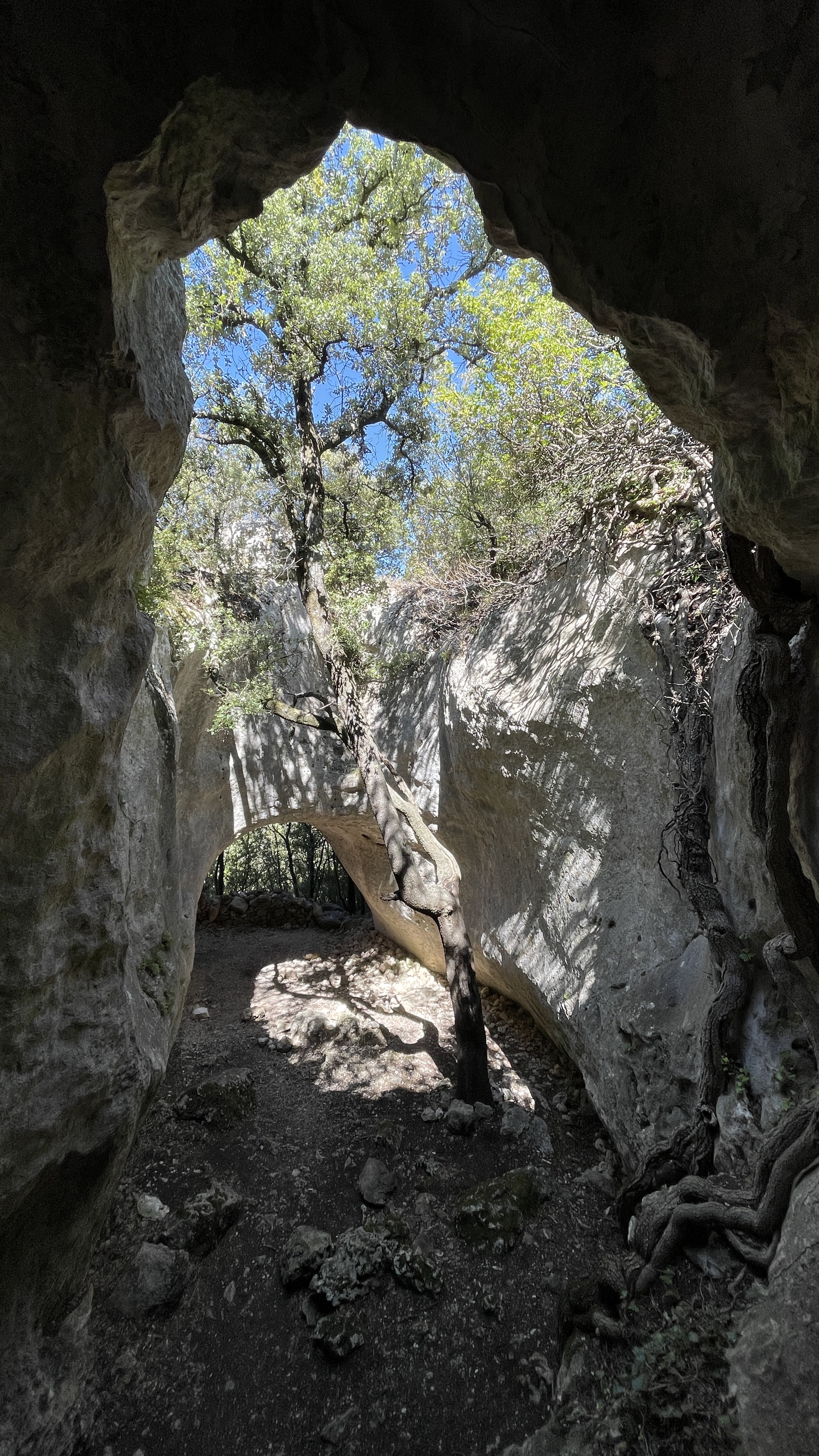 Succession de grottes et galeries, facilement accessibles depuis le parking ( noté chemin de la barigoule) = 800 m de DFCI, puis 50 à 100m de pente raide ( prendre des chaussures avec crampons, surtout s'il vient de pleuvoir !). Prendre aussi une frontale et rester avec les enfants, certains boyaux ne sont pas accessibles aux adultes ! Lieu chargé d'histoire lors des guerres de religion 😞 Bonne ballade !